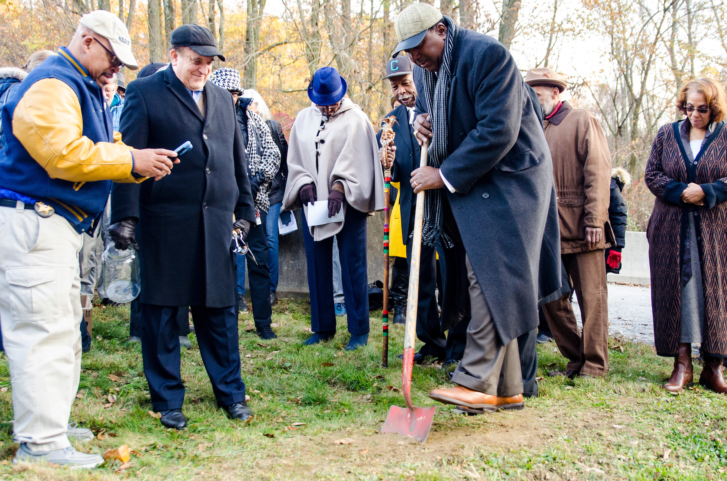 Image caption: a community member breaks ground during a South Coatesville Community Remembrance Project.