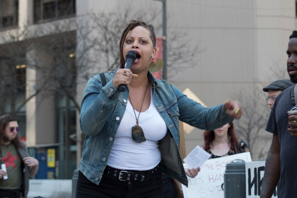 Speaker from the Black and Brown Workers’ Collective gets the mic.