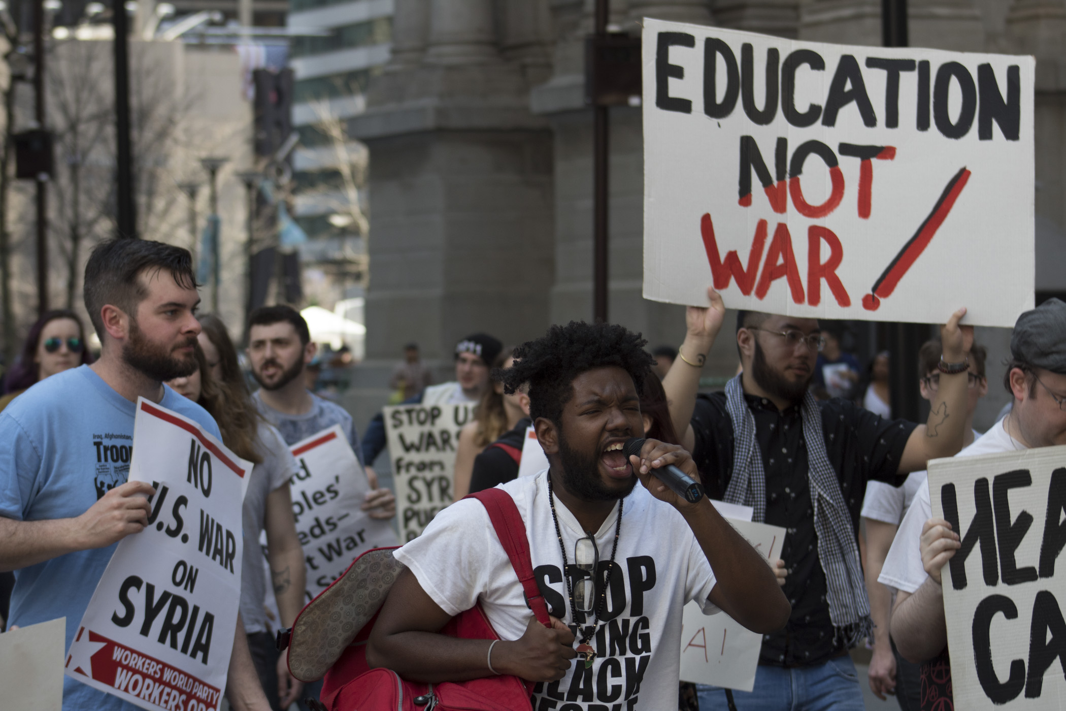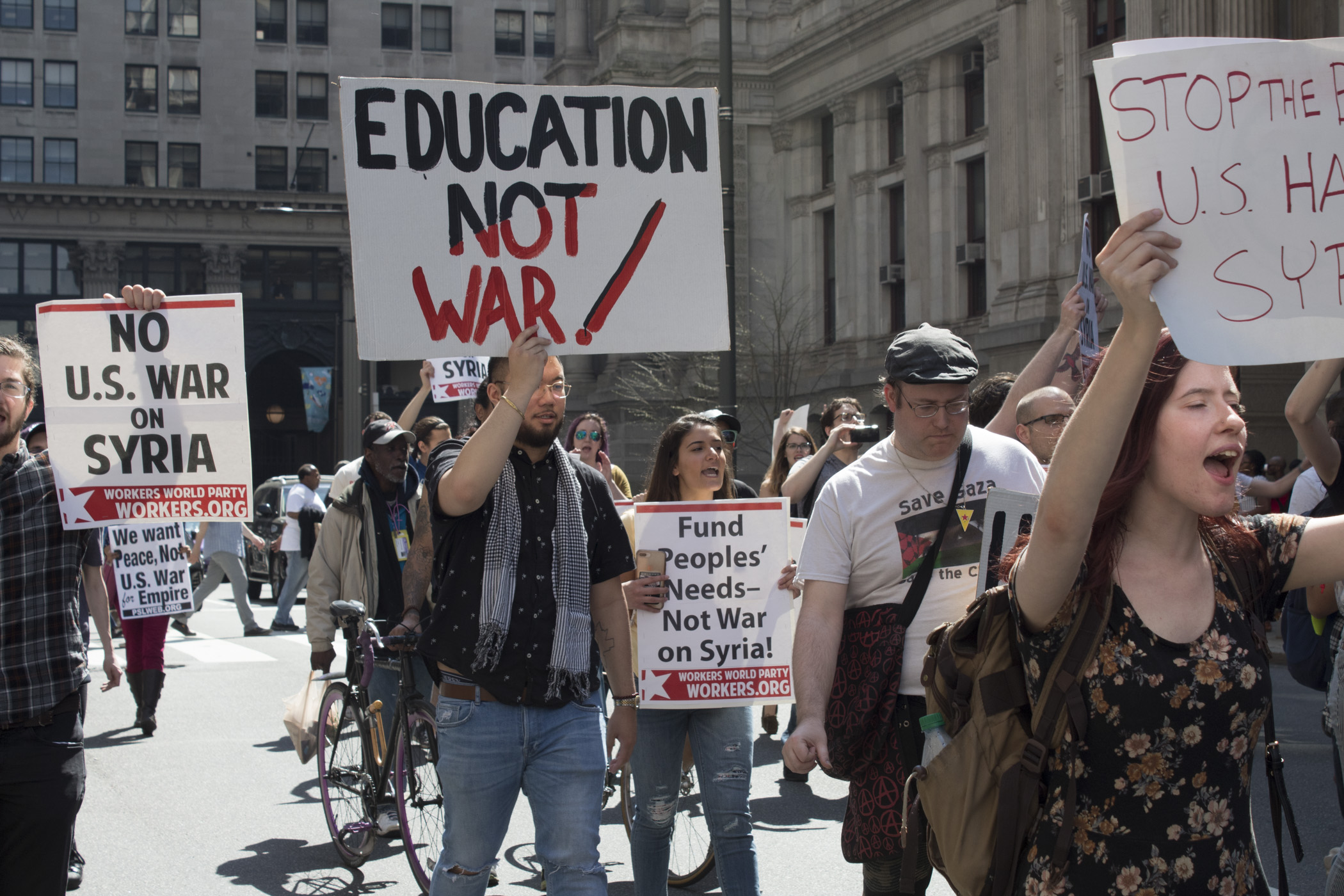 On Saturday, April 14th, Philadelphia activists and organizers from the Black and Brown Workers’ Collective, Philly Coalition for REAL Justice, Worker’s World Party, the Party for Socialism and Liberation, and Philly Don’t Orchestrate Apartheid gathered outside of City Hall to demonstrate against the United States attacks on Syrian people.