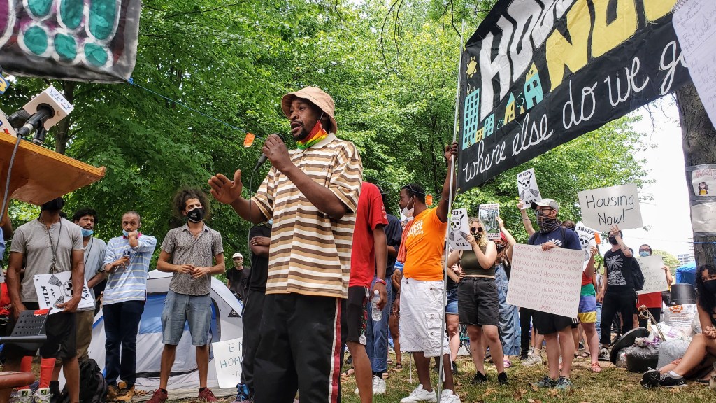 Black became a passionate advocate for the demands that she and other camp organizers feel are easily achievable and fair. “We are telling the state, ‘we want our rights back.’ We want y’all to give us what we’re asking for. More buildings for shelters. More resources, because at the end of the day if you can give people who have housing and jobs more resources, why can’t y’all give us that? We need more funding for low income people like me who have no cash. We need a big building where we can say, we’ve made it, we’ve succeeded at something we put our mind to.”