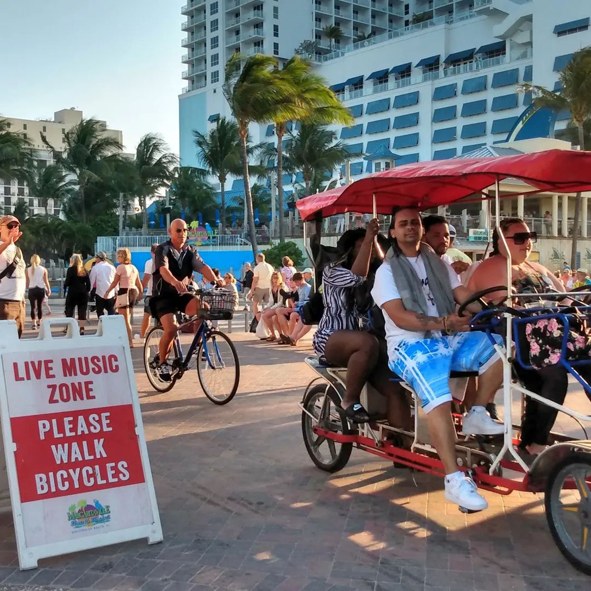 On a windy March afternoon in Hollywood, Florida, blissfully vacationing, eating an $8 thimbleful of Ben & Jerry’s, I noticed this double-sided sign imploring people to walk their bicycles in that area. And the many people bicycling past it. Immediately, a few embarrassing memories came up to slap me and I thought of my decades working on leftist journalism, with many of our messages less successful than others.