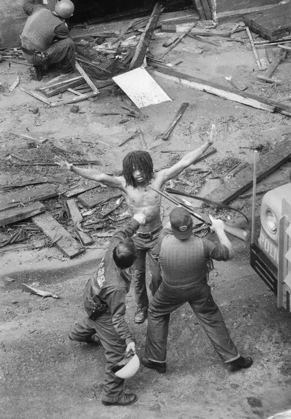 Delbert Africa surrendering to Philadelphia police in August 1978