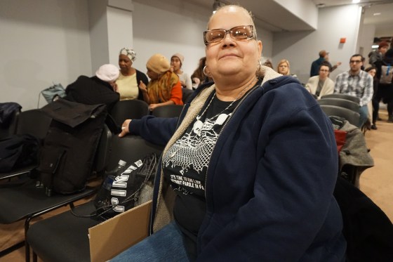 Image description: MOVE members and children stand on stage, holding pictures of MOVE 9 members Article and photos by Nick … More